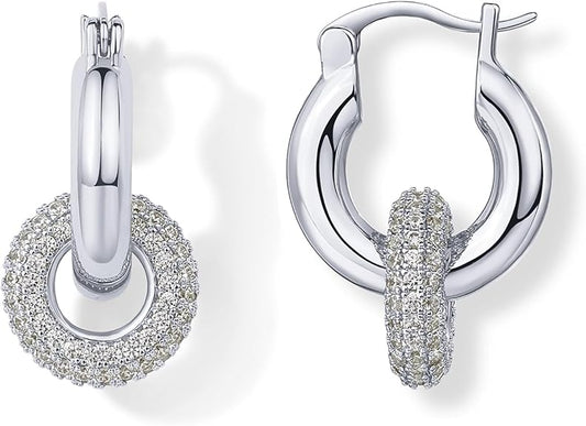 Vendor:Lumira JewelaryConvertible Chunky Hoop and Huggie Earrings - Cubic Zirconia CZ Drop Dangle Earrings for Women